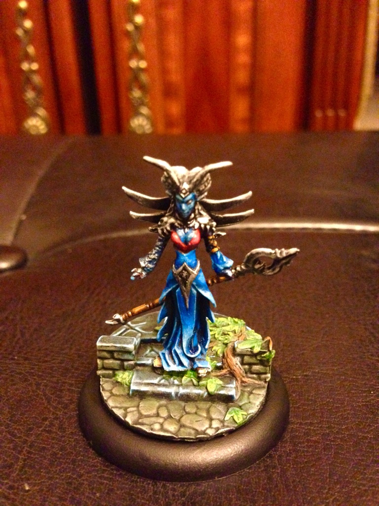 Here are the latest pics for this model. I have used a mix of skorne red, cygnar blue, and morrow white to highlight the skin. For the metal parts i have drybrushed a layer of quicksilver.